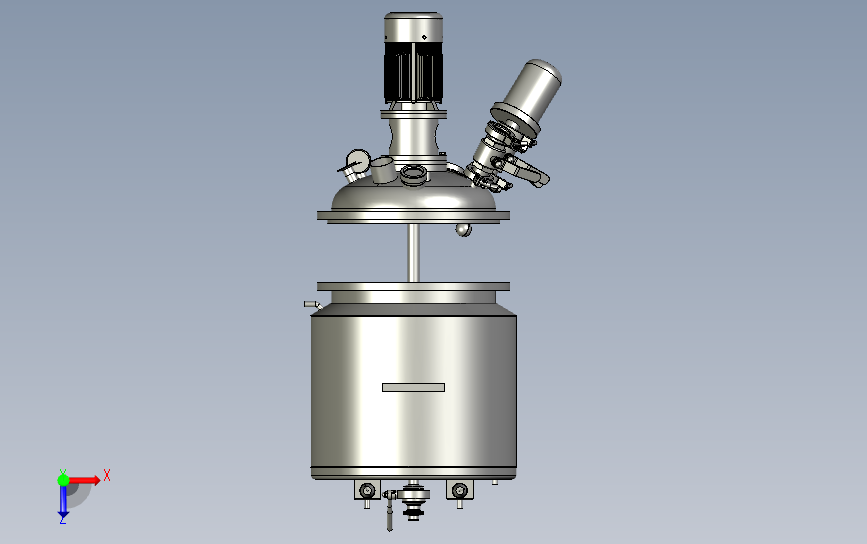 不锈钢电加热搅拌罐真空高剪切乳化罐:中间设置有电机进行旋转,侧面采用真空压机泵,图纸表达细节比较多,结构新颖,可以用来修改,可以作为机械设计学员参考使用。