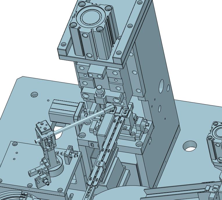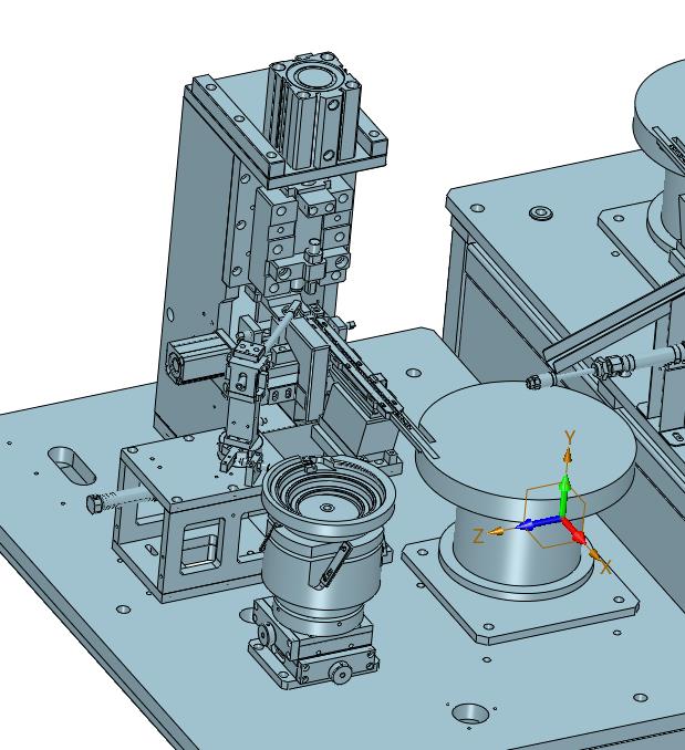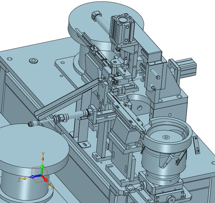 插片插轴自动供料铆压设备:上部设置有振动进行驱动插片和轴,进行传动下部,进行铆压,该模型创建效果逼真,中间格式数模文档保存,适应更多软件,不含参数,可以修改。