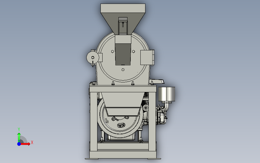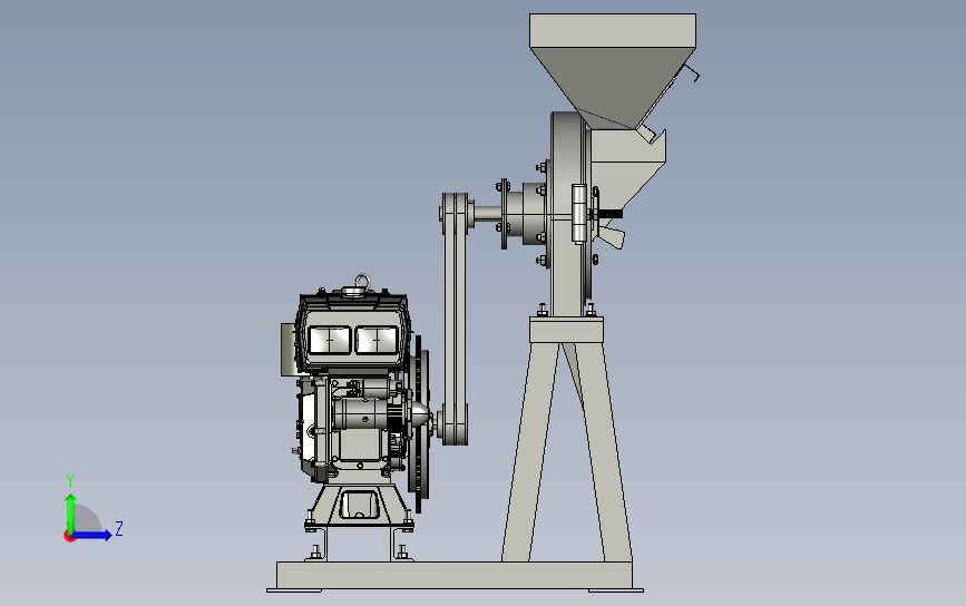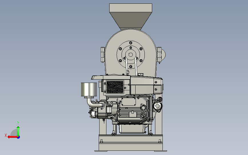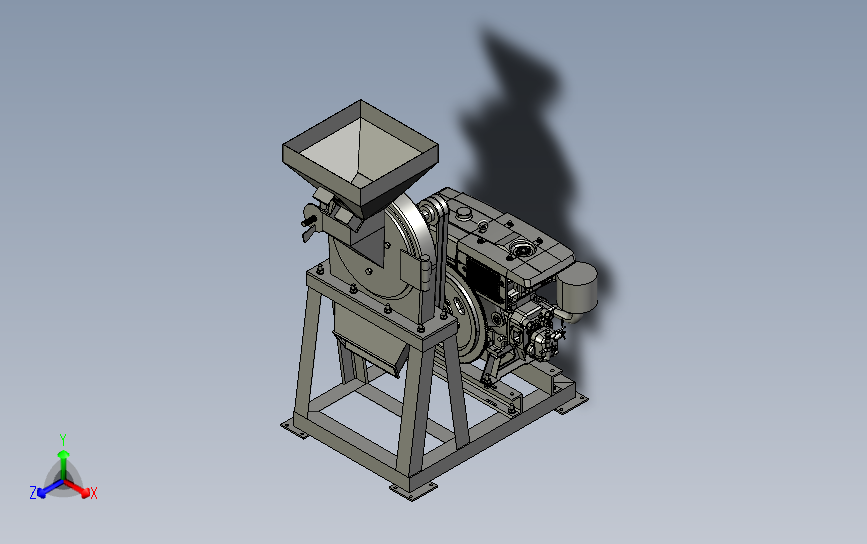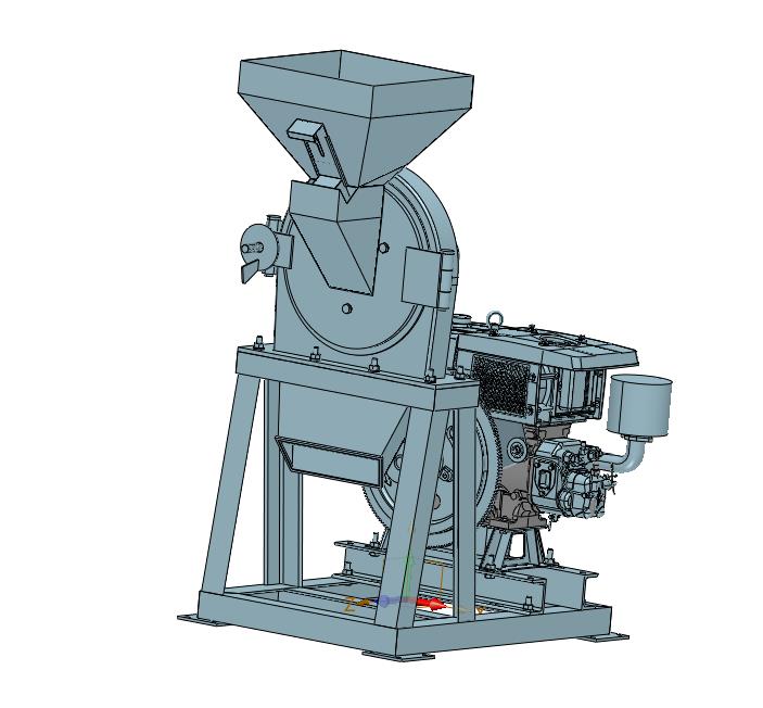 电动香料白糖不锈钢齿盘式打粉磨粉机:侧面设置有汽油驱动引擎,通过引擎驱动打磨盘,料斗放料,该模型创建效果逼真,中间格式数模文档保存,适应更多软件,不含参数,可以修改。