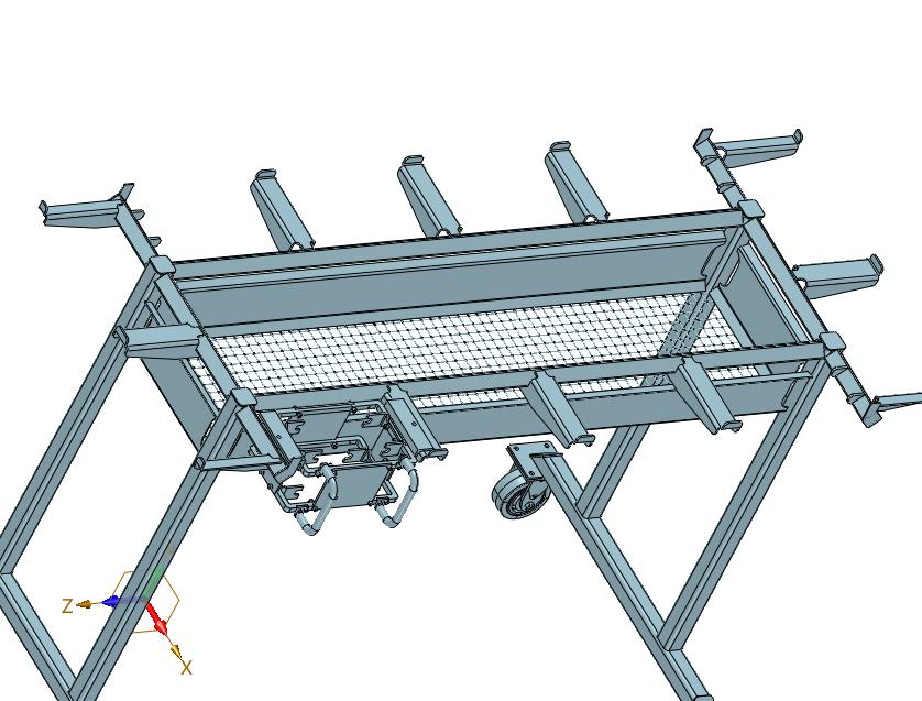 滤网四轮移动搬运车:下部设置有四个轮子,上部的滤网进行放置产品,推动进行移动,进行搬运,图纸表达细节比较多,结构新颖,可以用来修改,可以作为机械设计学员参考使用。