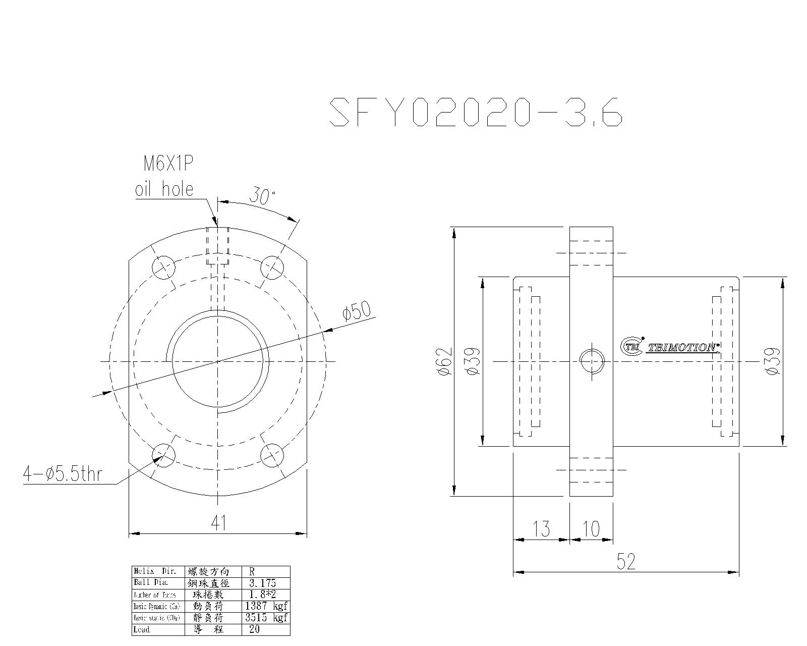 TBI 滚珠丝杠SFY02020-3.6(ID:554620)