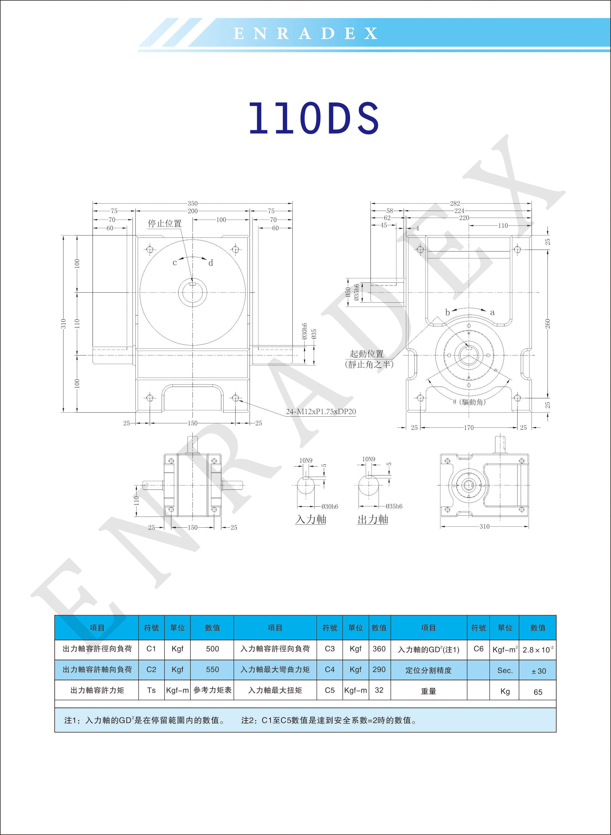 4 | ER-RU110DS英锐凸轮分割器垂直带轮式右侧下方CB.STEP | 24.65M |