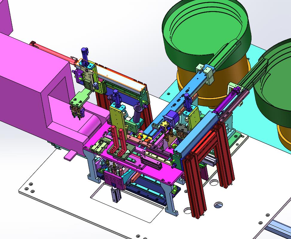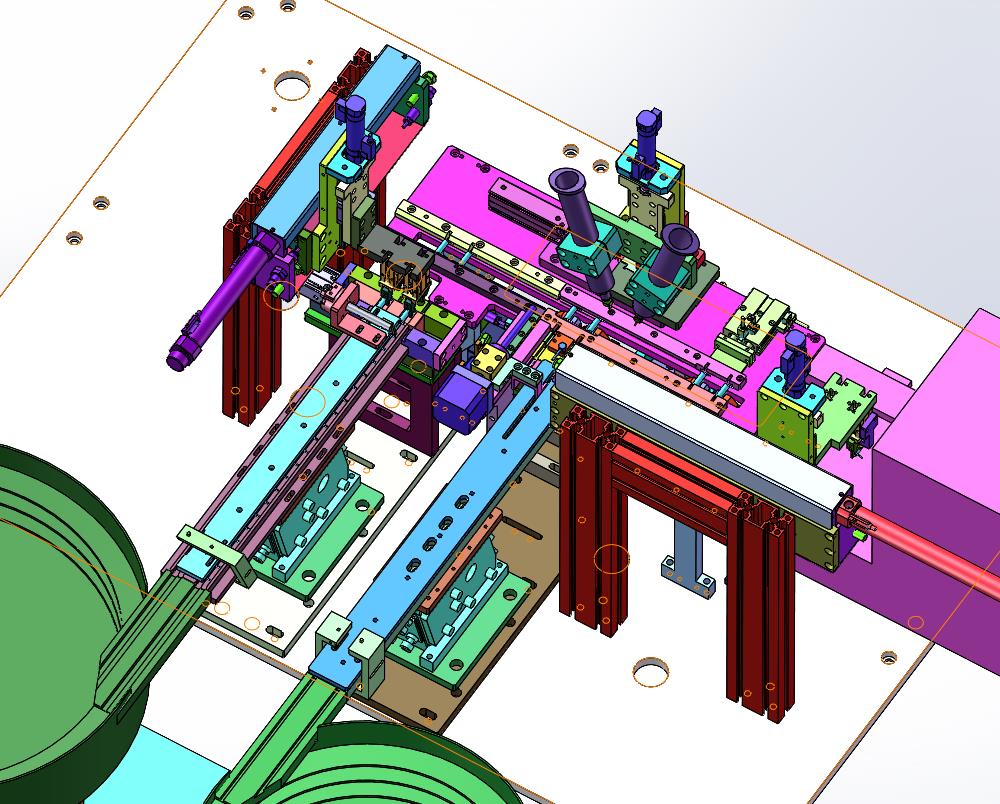 线圈和电阻碳棒组装涂胶设备:通过输送线进行移动线圈,上部的涂胶机进行涂胶,侧面的机械手抓取碳棒进行组装,内部的结构明确,结构已经确定大致内容,仅供下载学习参考使用!可以下载。不能在商业利用。
