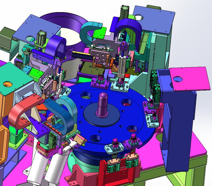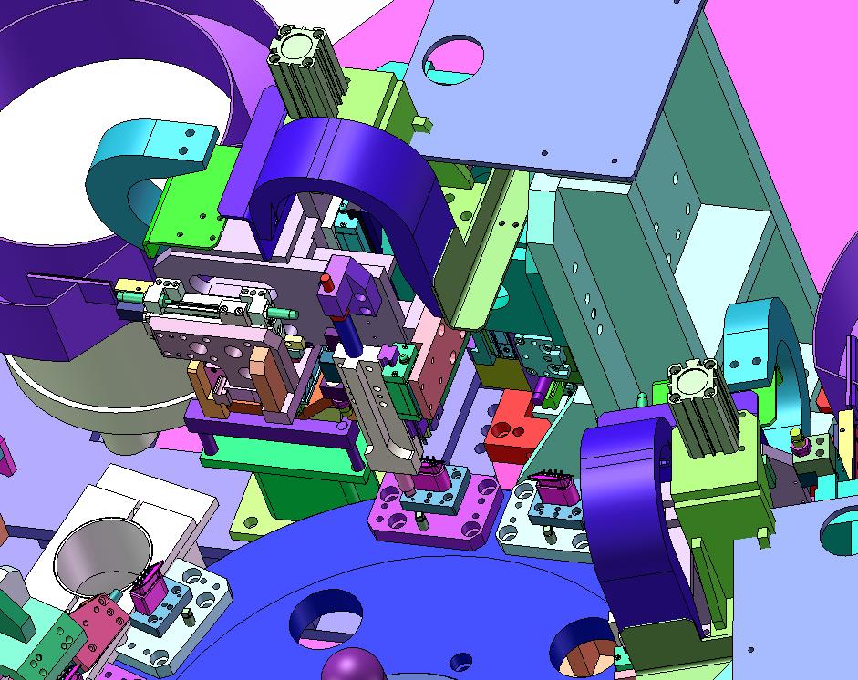 汽车四芯插头冷压插拔式端子组装检测设备:采用转盘进行电动进行驱动,通过上部的气动进行推动进行冷压插入,含中间格式数模,其形态优美曲线流畅,采用实体的表现方式,欢迎下载和使用,不能用于商业目的。