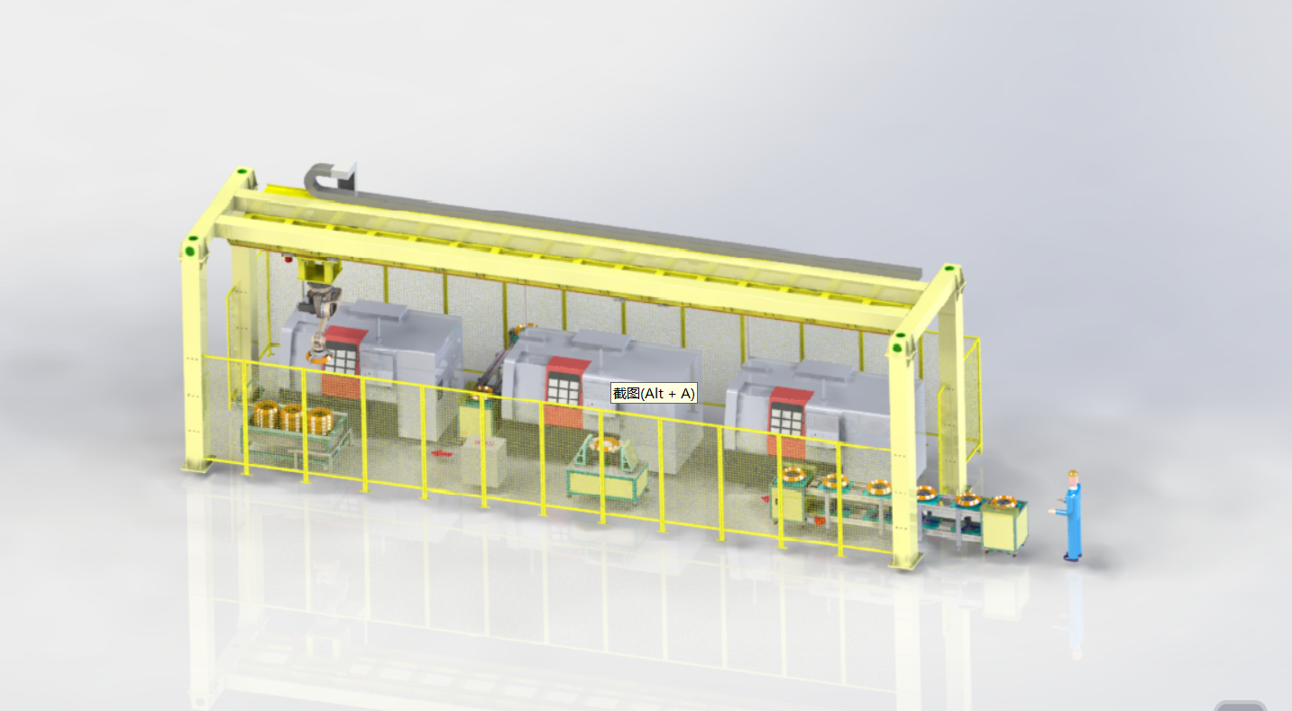 本设计方案为一款齿轮智能生产线方案,利用机械手智能上料到机床加工,当机床加工完成后,机械手自动下料到料车。具体方案内容请看文件。本三维方案为SolidWorks2019格式,可编辑更改。