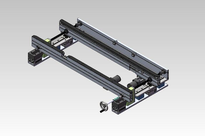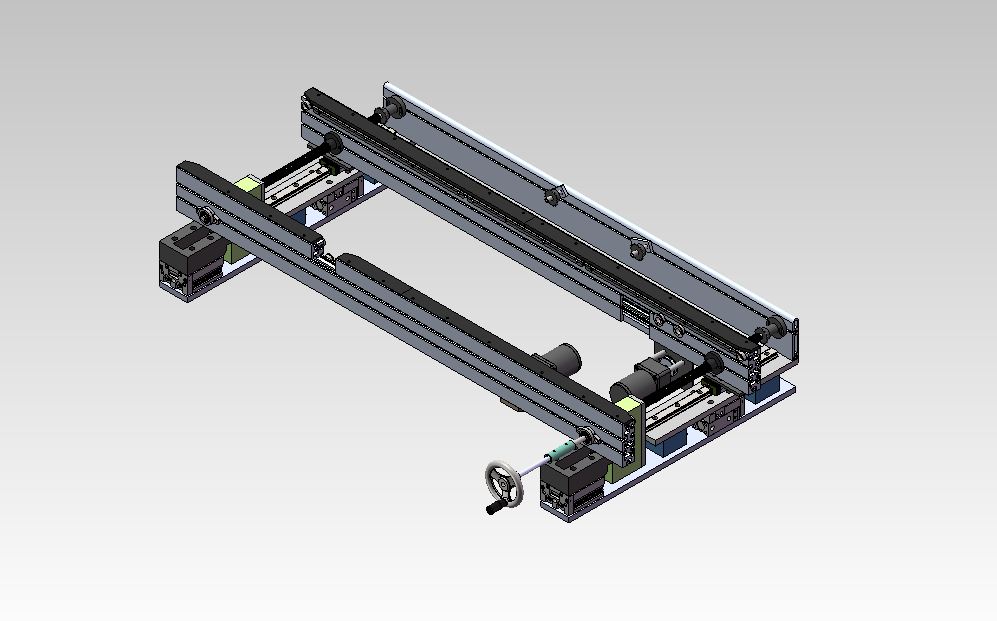这是一条宽度可以调节的输送线的模型,主要是通过滚珠丝杠的转动来调节输送线的一侧来回移动达到调节宽度的目的,该输送线有铝型材底架和框架,导轨,滚珠丝杆、驱动电机等组成,模型可以作为相关设计来参考,文件格式为proe5.0,有特征无参数可以修改,还有stp和igs工业通用格式。