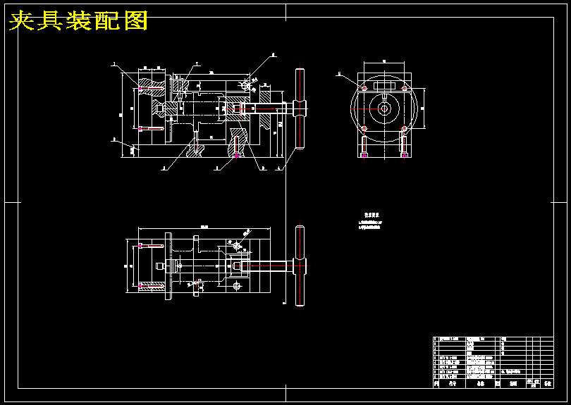 ![CA6140车床法兰盘[831004] 加工工艺及钻φ4 φ6阶梯孔夹具设计[版本4](含CAD图纸+工序卡+说明书)](https://html.lazystones.com/lazy/829563/image/夹具装配图.png)
