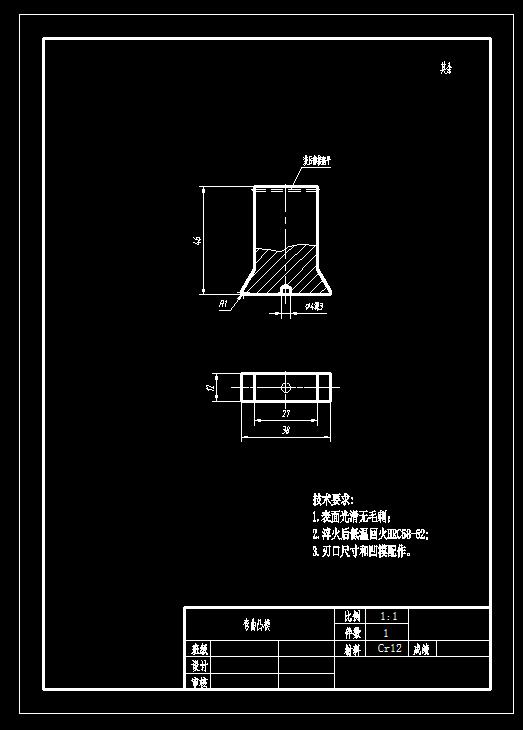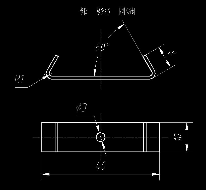 弯板 厚度1.0 材料08钢 60度弯板弯曲模(CAD图+Proe三维)