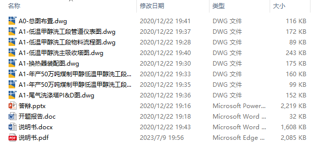 50万吨煤制甲醇净化低温甲醇洗工艺设计CAD+说明(ID:989631)