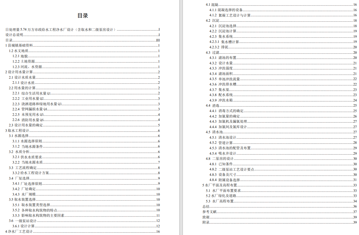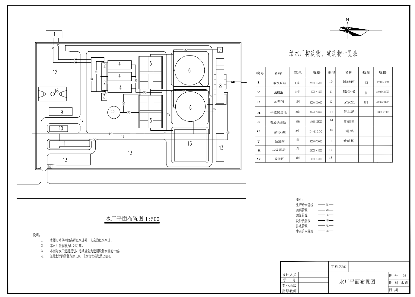 日处理量5.74万方市政给水工程净水厂设计(含取水和二级泵房设计)CAD+说明(ID:991601)