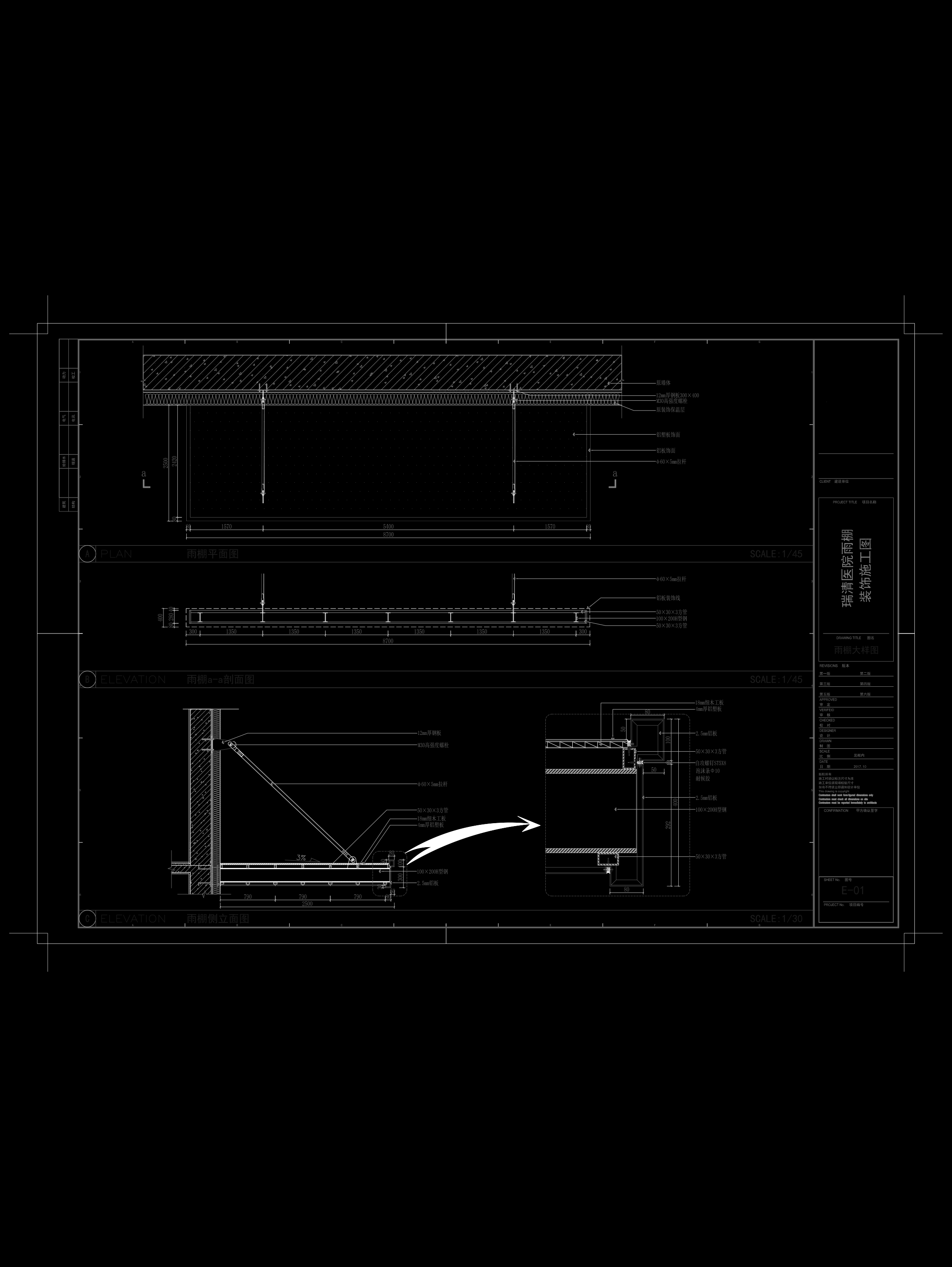 钢结构铝板雨棚节点大样图施工图(ID:994585)