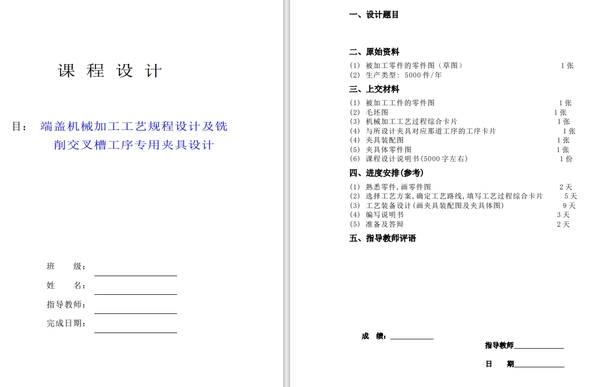 端盖机械加工工艺规程设计及铣削交叉槽工序专用夹具设计+CAD+说明(ID:996989)