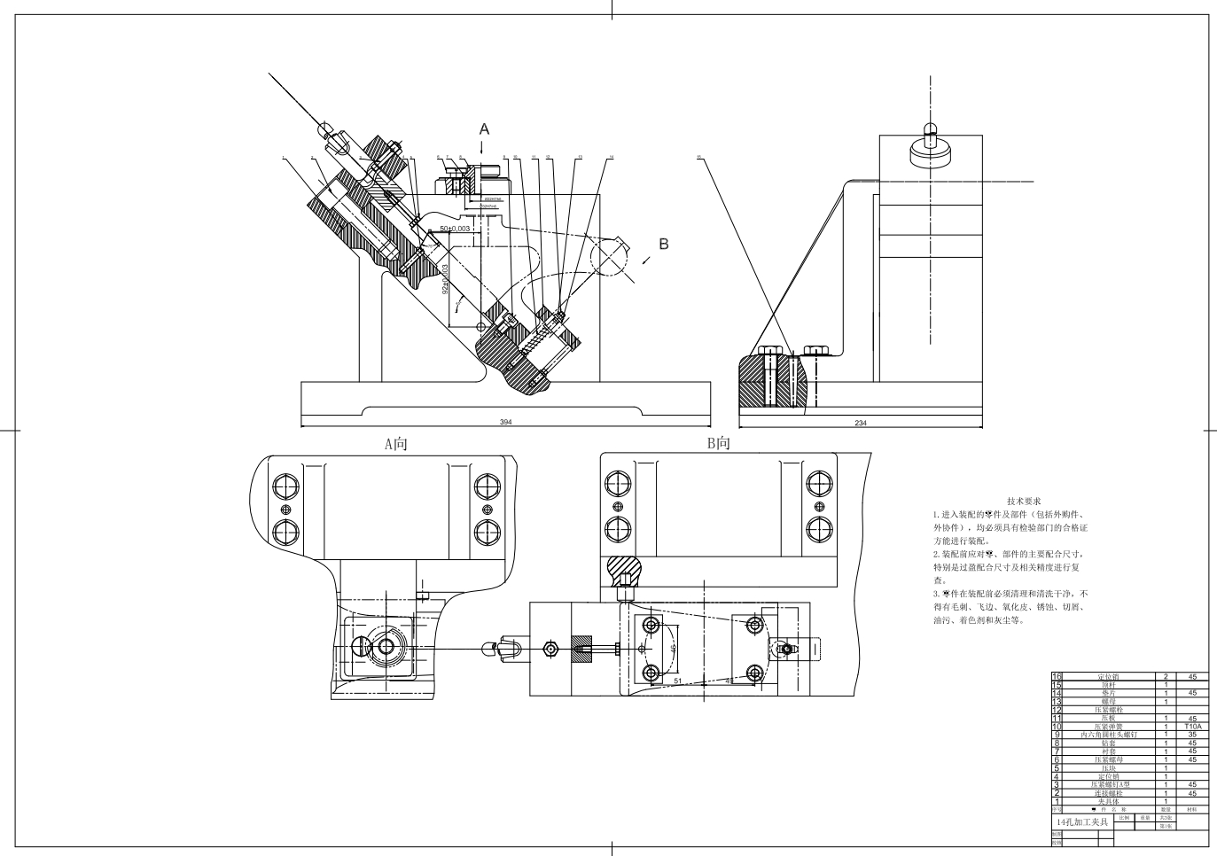 尾座体加工Φ14斜孔的夹具体设计CAD+说明书(ID:997803)